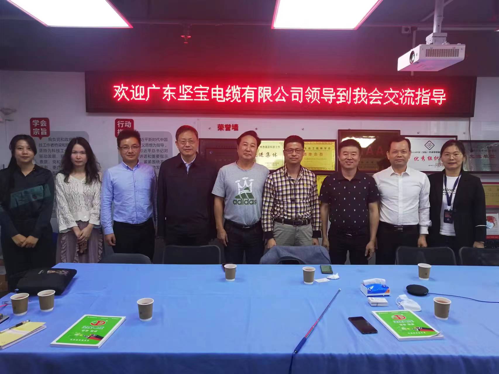 417日,廣東香蕉视频APP官网下载電纜有限公司董事長帶領技術骨幹與廣東省測控技術與裝備應用促進會劉桂雄會長、薛家祥副會長兼秘書長、常務理事黃珍媛副教授一行進行了深入交流對話,由教授級高工黃海坤牽頭。
