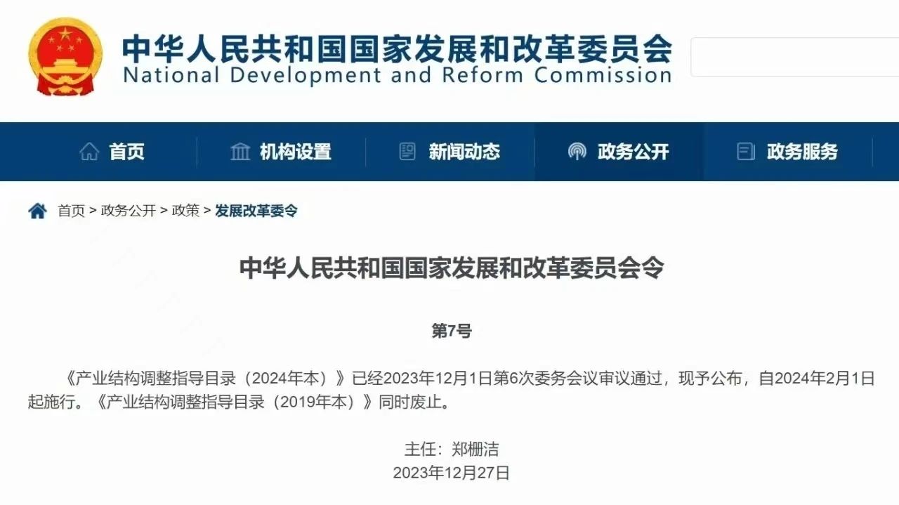 相關負責人表示,產業結構調整指導目錄是引導社會投資方向、政府管理投資項目,製定實施財稅、信貸、土地、進出口等政策的重要依據。目錄2024年本的政策導向是,推動製造業高端化、智能化、綠色化,鞏固優勢產業領先地位,在關係安全發展的領域加快補齊短板,構建優質高效的服務業新體係。